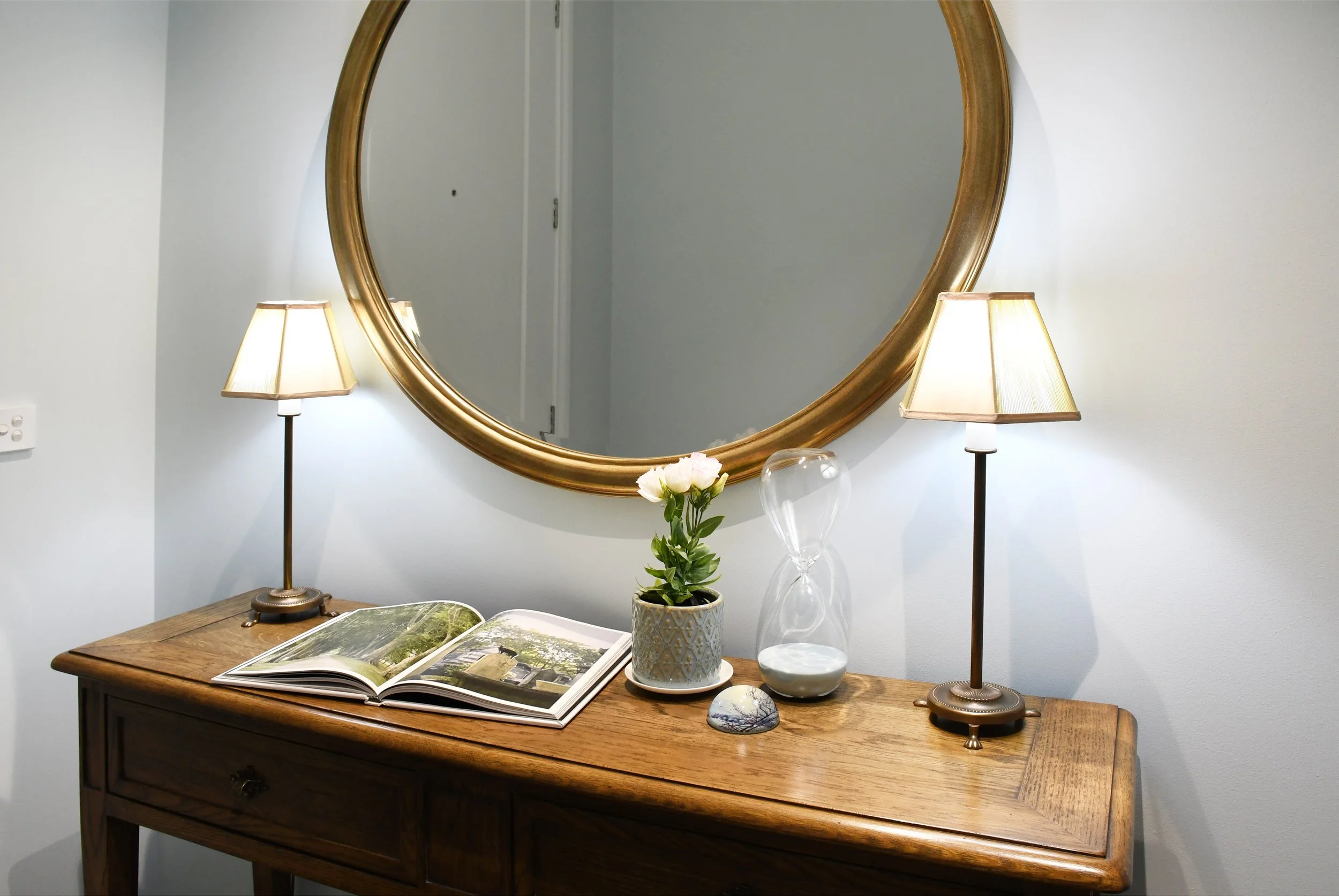 We created a transitional home and garden for a professional couple, by seamlessly blending Classic European and Modern design styles. The colour palette featured duck egg blue, mocha, taupe and white, which evokes a feeling of serenity as you move through each room. Several elements of this home were designed to balance out the temperature extremes experienced in the Macedon Ranges. They include Hebel concrete walls, upgraded insulation, an elevated reverse cycle heating and cooling system and large double glazed windows. Together they deliver a comfortable interior environment - often without the need for heating or air-conditioning - during several months of the year.